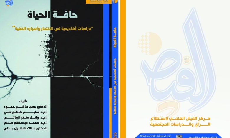 يقدم مركز الفيض العلمي العلمي لاستطلاع الرأي والدراسات المجتمعية إصداره الجديد بعنوان “حافة الحياة”  .. دراسات أكاديمية في الانتحار وأسراره الخفية.